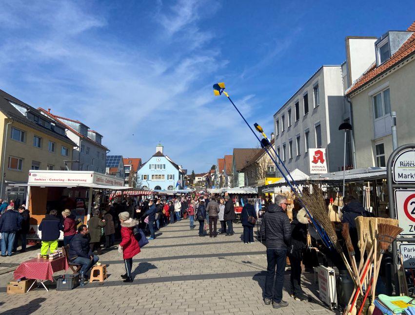 Seit der 2009 erfolgten Neugestaltung des Marktplatzes findet er vor allem hier und in der angrenzenden Kirchstraße statt. Nicht weniger als 50 Stände sind angemeldet und auch das besondere Angebot in den Gaststätten und Geschäften gehört zum Rutesheimer Krämermarkt einfach dazu.