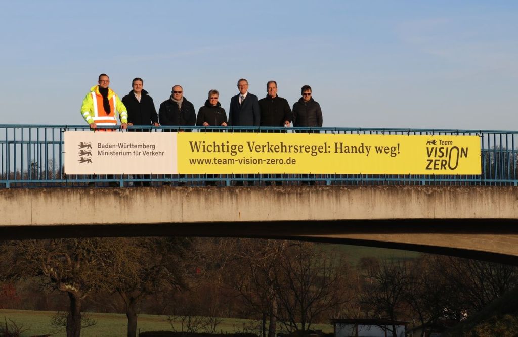 An drei stark befahrenen Stellen im Landkreis Böblingen ist eine neue Aktion zur Verkehrssicherheit gestartet. Banner der landesweiten Kampagne „Vision Zero“ sollen auf Unfallrisiken aufmerksam machen und besonders das Thema Ablenkung im Straßenverkehr in den Fokus rücken. Die Initiative, bei der Aktion mitzumachen, kam aus dem Rutesheimer Rathaus und so wurde hier auch das erste Banner befestigt.