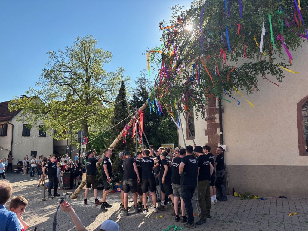 Viele helfende Hände fällten, schmückten und stellten die traditionellen Maibäume