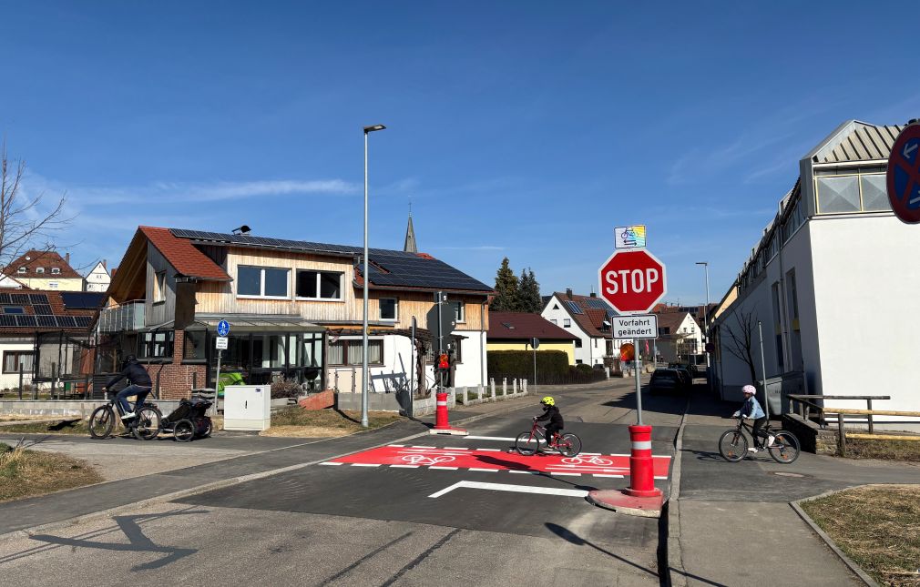 Der Technische Ausschuss des Gemeinderats hat dieser Änderung vor allem im Hinblick auf die sehr vielen Schülerinnen und Schüler zugestimmt. Am Freitag, 7. März 2025 konnte die Querung mit auffallend roter Farbe markiert und sehr deutlich und gut erkennbar beschildert werden. In den ersten Wochen ist zusätzlich zum Schild „Vorfahrt geändert“ ein gelbes Blinklicht im Einsatz, um auf die veränderte Situation ganz besonders deutlich hinzuweisen.