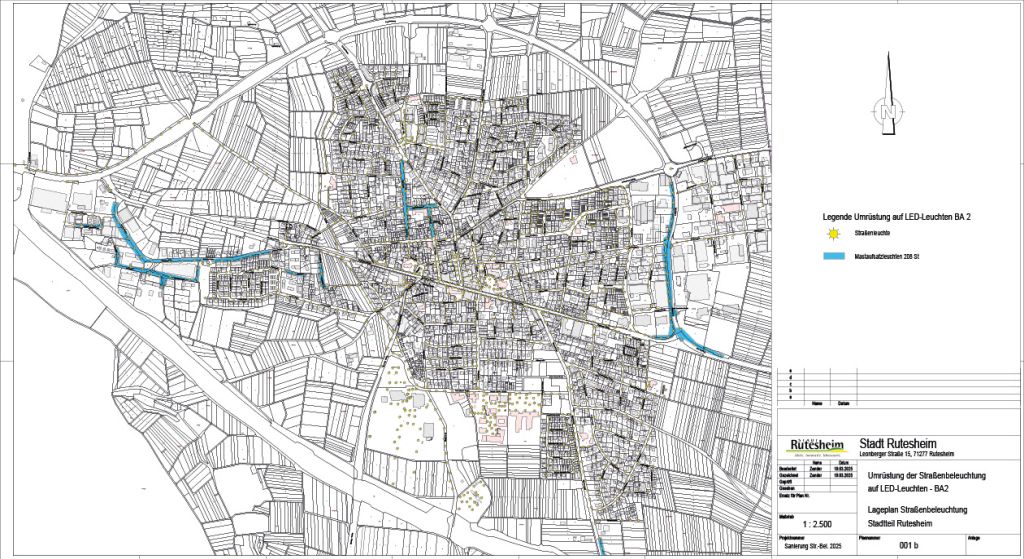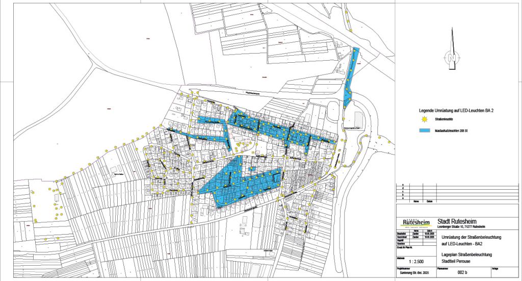 Die Stadt Rutesheim informiert, dass der zweite und abschließende Bauabschnitt zur Umrüstung der Straßenbeleuchtung auf moderne LED-Technik am 20. April 2026 startet. Mit den Arbeiten wird die bereits begonnene Modernisierung nun vollständig abgeschlossen.