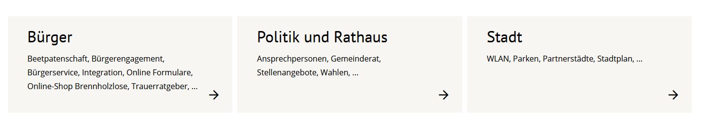Bürger Hier stehen zum Beispiel Informationen zu Beet-Pflege, Räume mieten, Mängel melden, Hilfe in Lebens-Lagen
